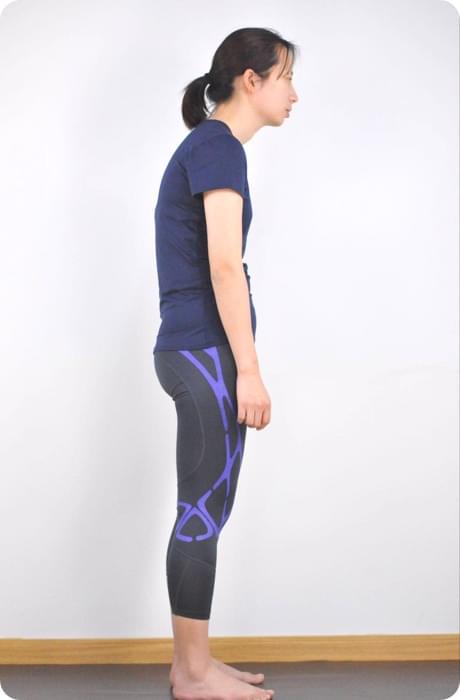 两肩向前靠拢,从头顶往下看,肩部呈半圆状,属于长时间脊柱向前弯曲或含胸引起的体态问题。